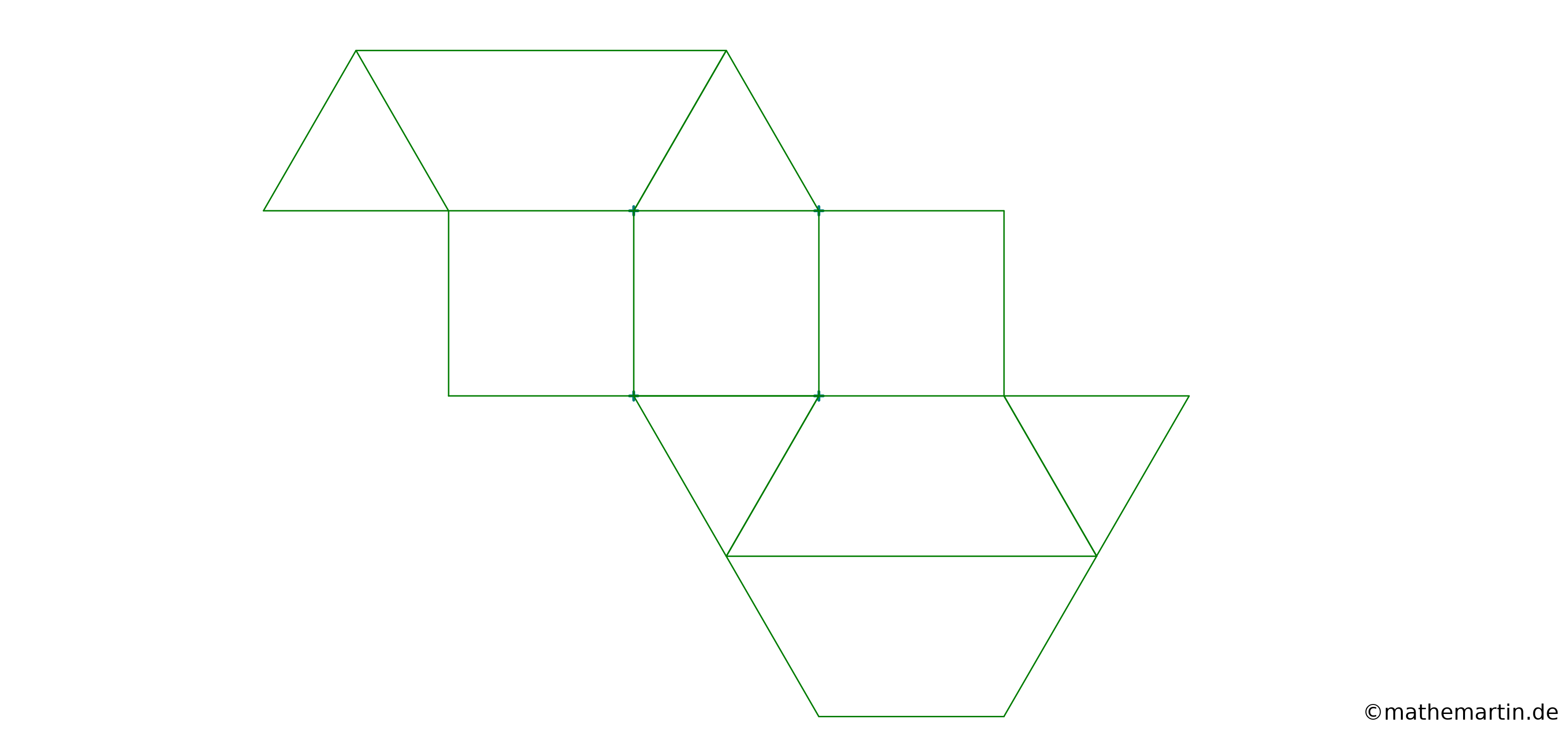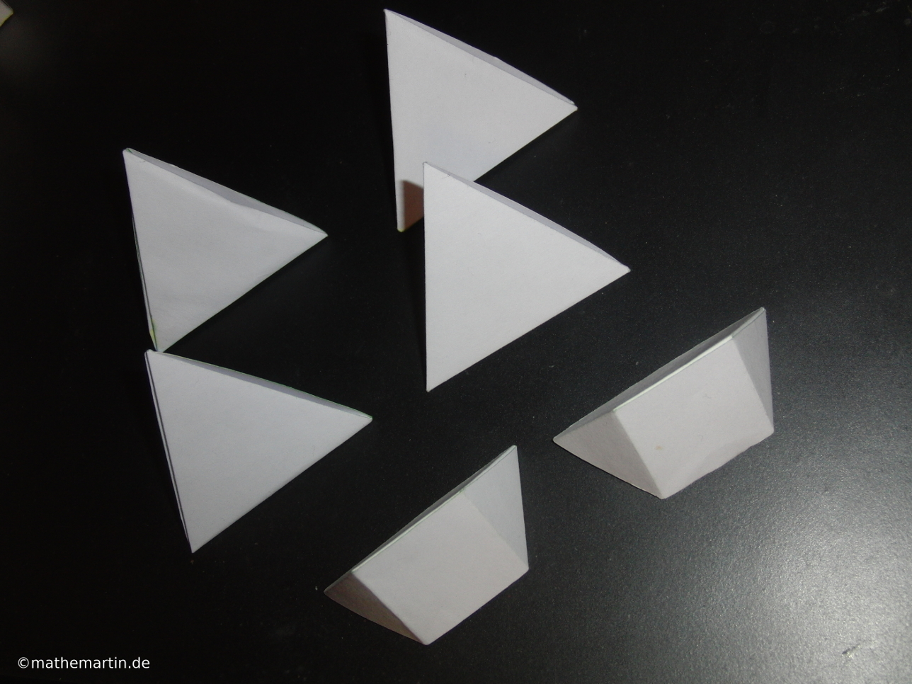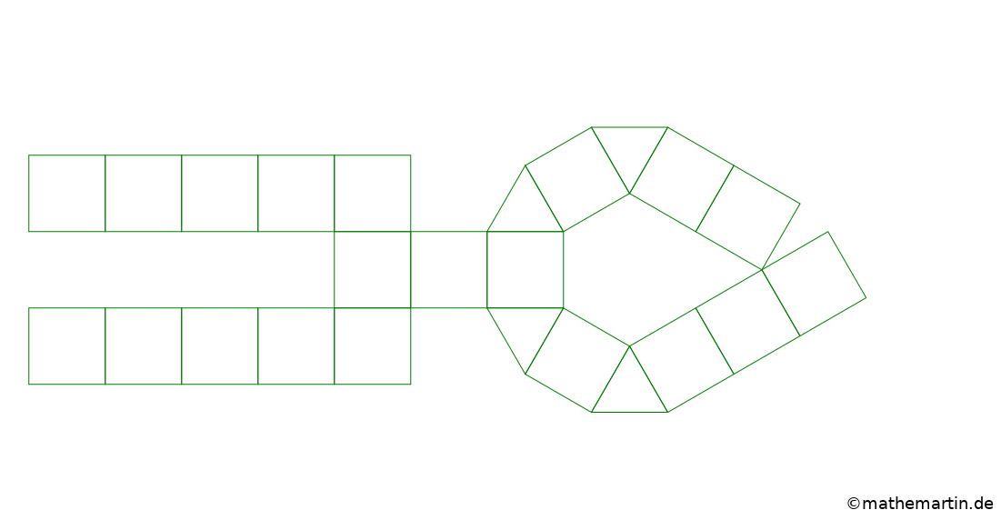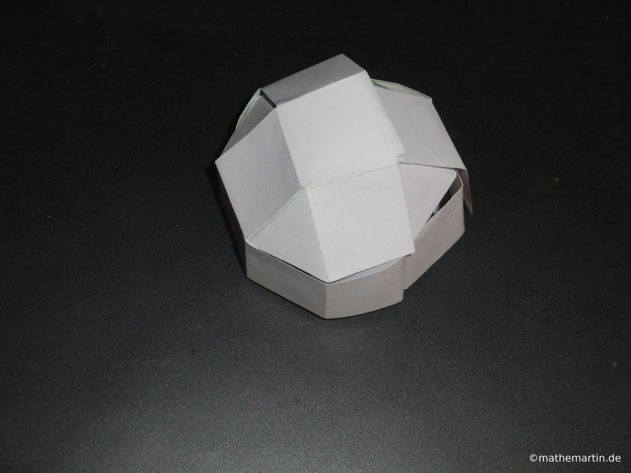Ich stelle hier einige selbst designte Polyedermodelle vor, die ich nach den Regeln des Kirigamis konzipiert habe. Mithilfe der bei manchen Modellen daneben dargestellten Abwicklungen kann man die Modelle selber nachbasteln. Dazu muss die Abwicklung ausgeschnitten und so geflochten werden, dass der dargestellte Polyeder entsteht. Bei manchen Abwicklungen müssen auch ein paar der grünen Linien geschnitten werden.