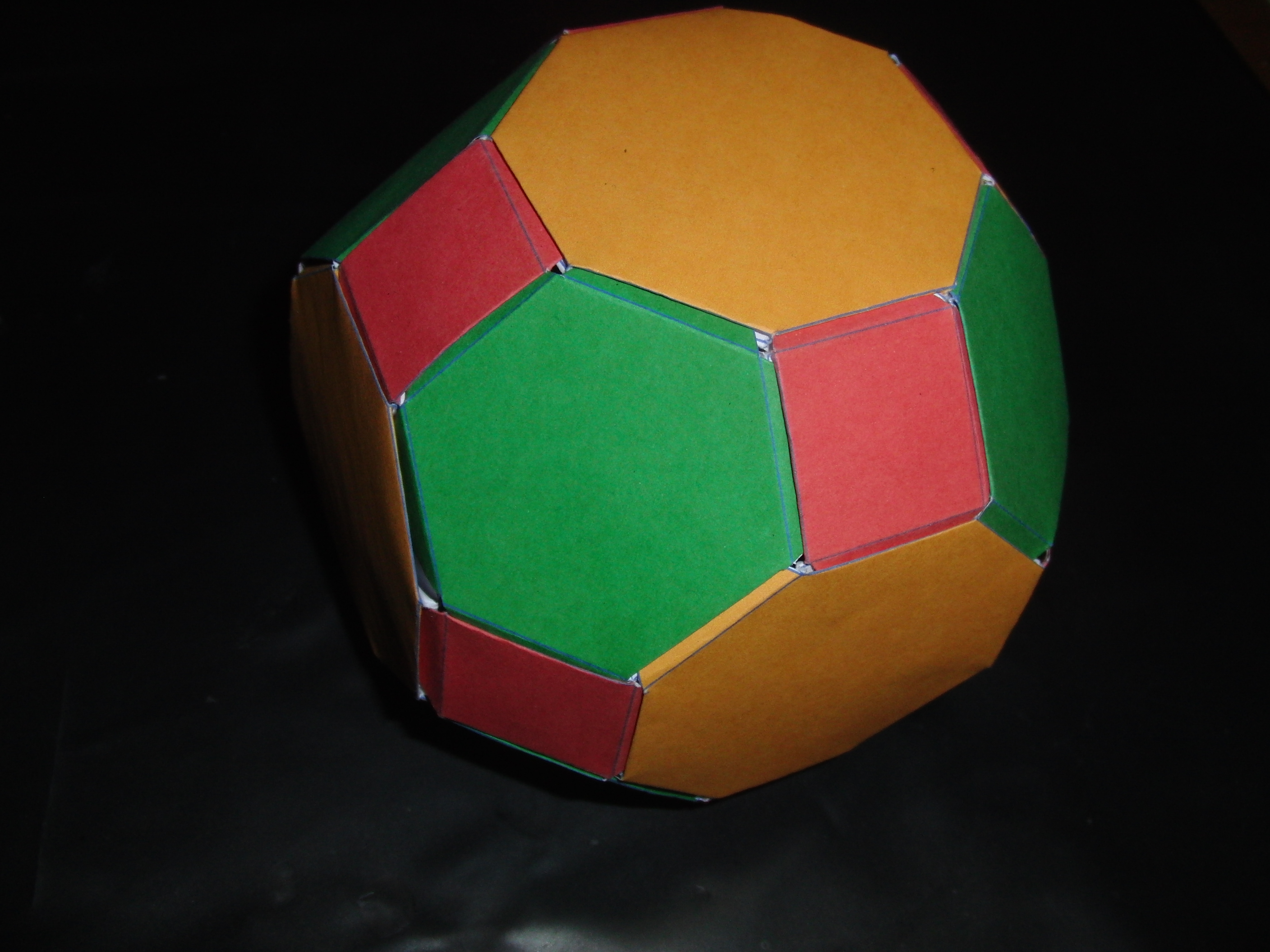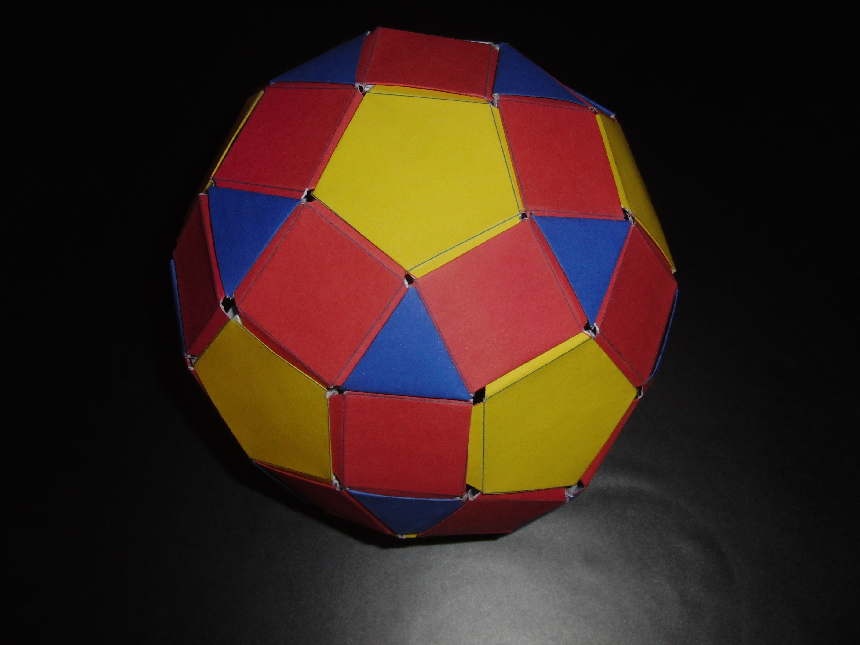 Ich habe nach den Regeln des Kirigamis einige Flächenmodule designt, aus denen man alle aus regelmäßigen Flächen zusammengebaute konvexen - und auch einige nicht-konvexe - Körper bauen kann. Dazu zählen die 5