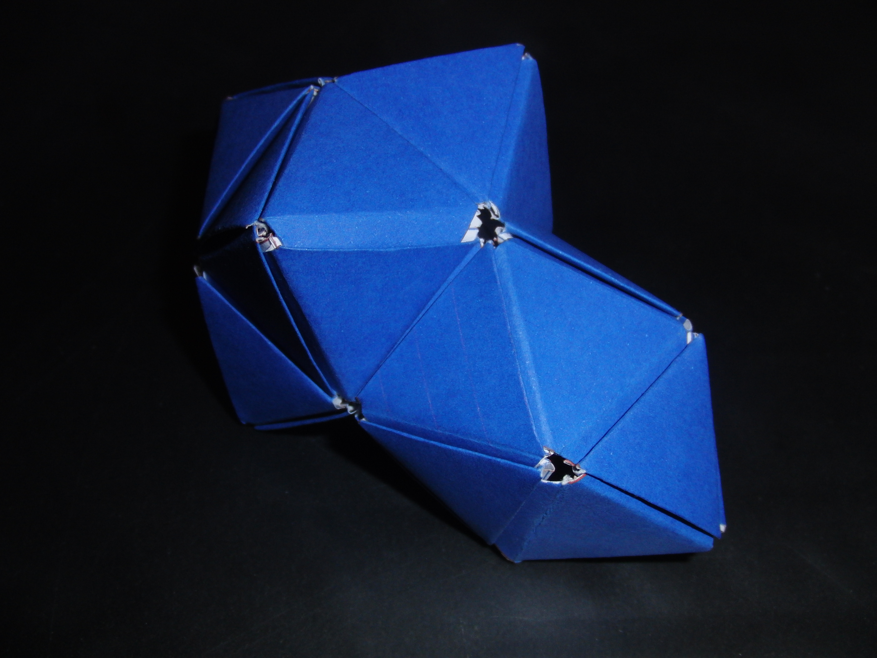 Ein Deltaeder ist ein aus Dreiecken zusammengebauter Polyeder. Das Besondere am Deltaeder von Mason ist, dass es flexibel ist. Das bedeutet, dass man es trotz starrer Flächen zerstörungsfrei verformen kann (siehe z.B. Berger). Dies kann man auch beobachten, wenn man Masons Deltaeder mit meinen Modulen nachbaut.